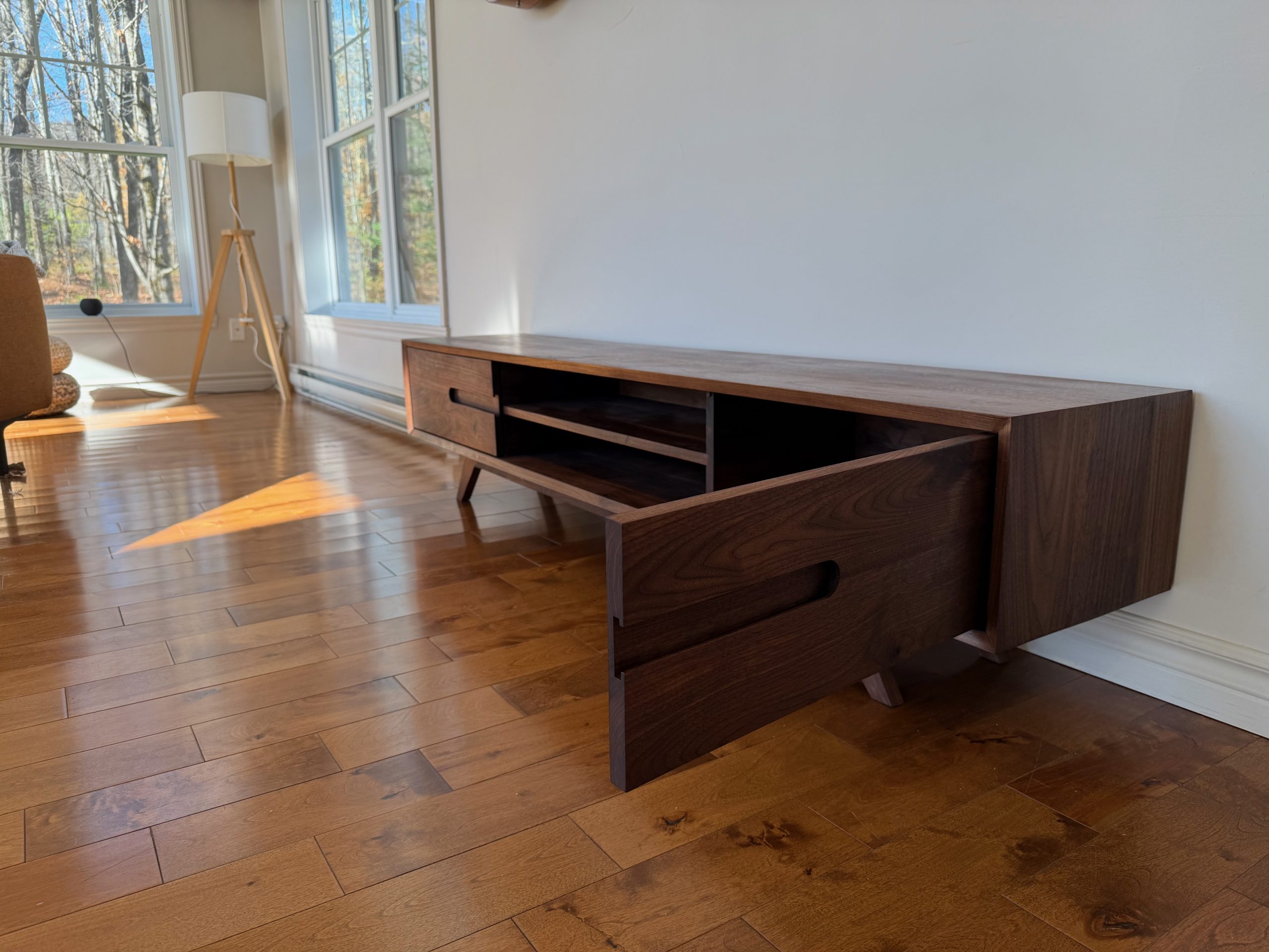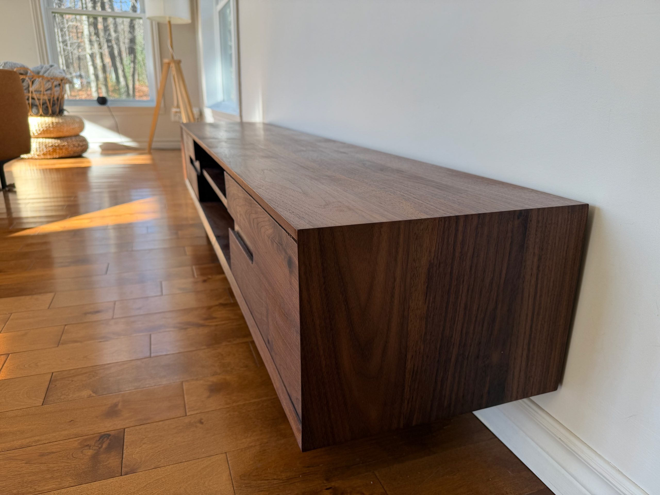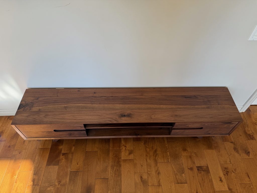 My most recent project was a black walnut under-projector console, to support my new sound bar. It’s all solid wood, 6 feet wide given how large my Sonos Arc Ultra is!